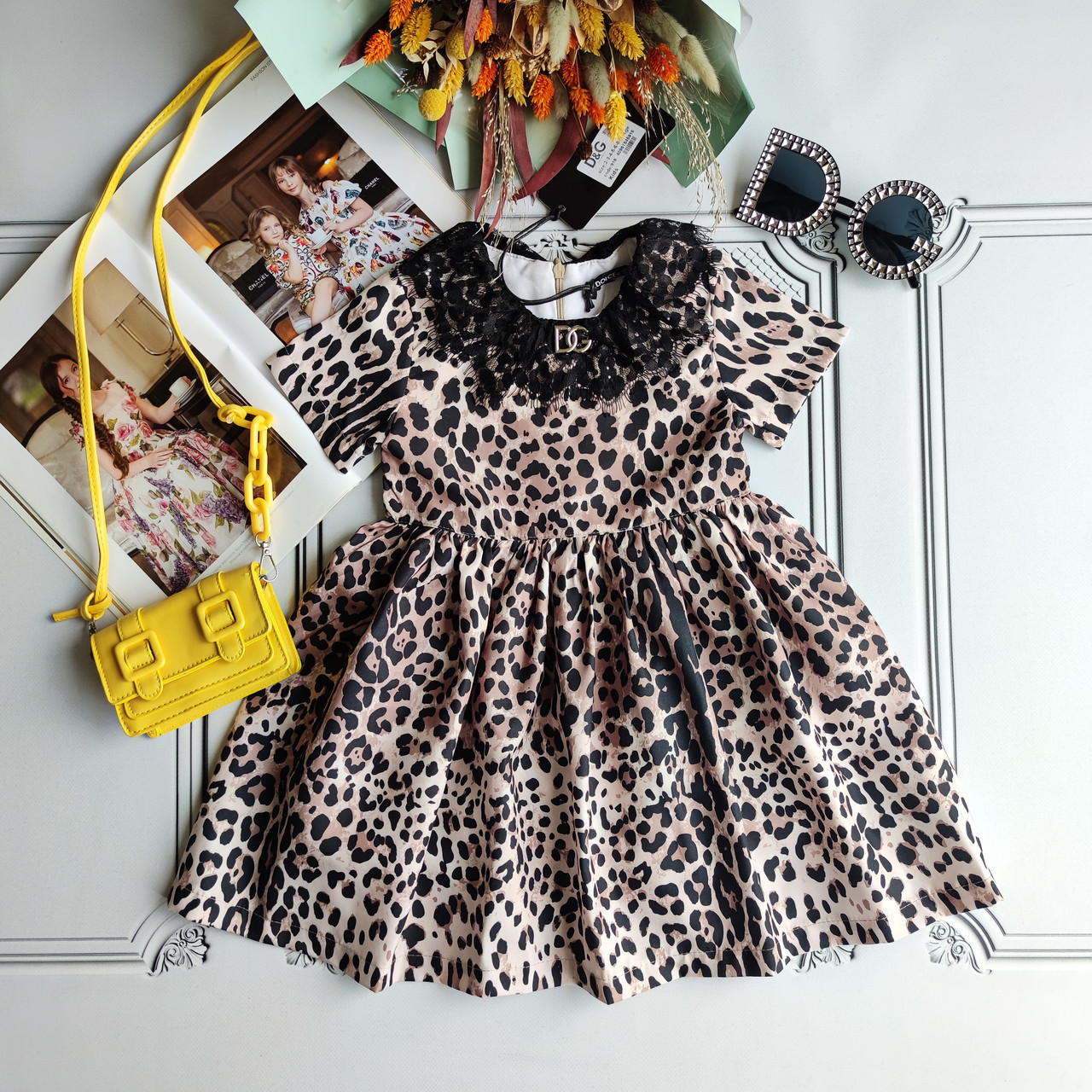Дитяча святкова сукня з коротким рукавом Дольче у принті леопард