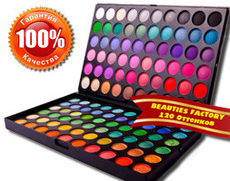 Палітра Тіней "Beauties Factory" на 120 Відтінків: матові та з шимером (блиском). 50 матових і 70 перламутрових відтінків. Не скочуються, не обсипаються, прекрасно наносяться й розтушовуються. Вам подобається бути в центрі уваги та дивувати оточення? - Тоді ця приголомшлива Палітра Тіней на 120 відтінків для Вас!
